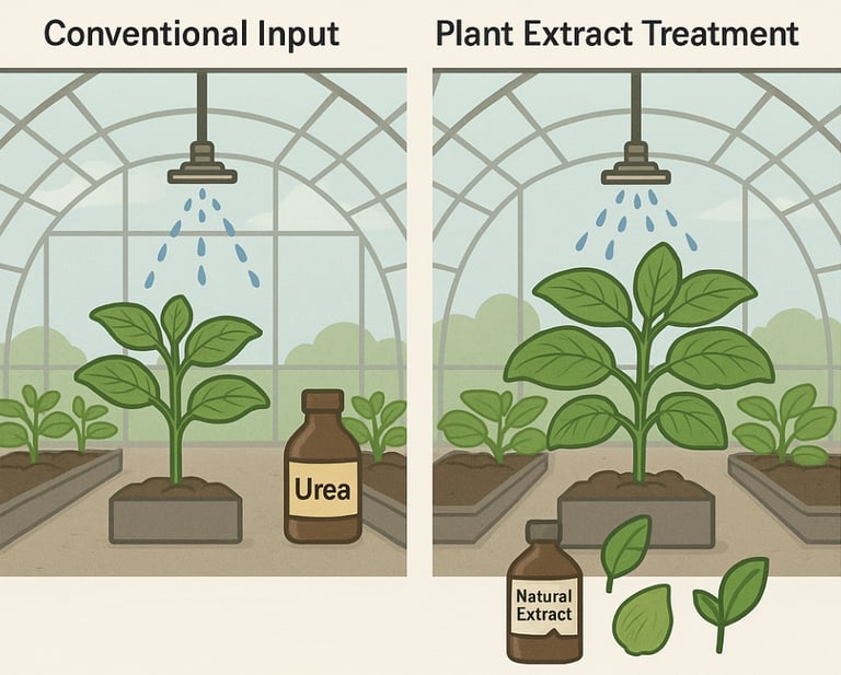 Soil sprays made from natural plant extracts โ ๐ ๐ฎ๐๐ฏ๐, ๐ ๐๐ซ๐ฅ๐ข๐, ๐๐ฅ๐จ๐, ๐๐ง๐ ๐๐ฅ๐๐๐ฅ๐๐ โ outperformed synthetic fertilizers like urea in promoting growth in greenhouse experiments.