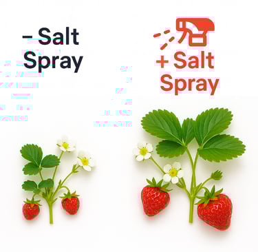 In a recent greenhouse trial, foliar spraying strawberries with a low NaCl (salt) solution during fruit fill did three things under heat spikes (>25 ยฐC):