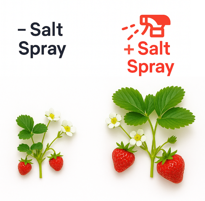 ๐ Source: Lu et al. (2025). Low-concentration NaCl foliar spraying enhances photosynthesis, mineral concentration, and fruit quality of strawberry during greenhouse high-temperature periods. BMC Plant Biol, 2025 Apr 16;25(1):487