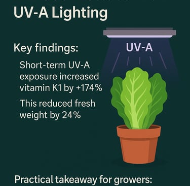 โข Long-term UV-A exposure boosted vitamin K1 tooโbut reduced overall growth.